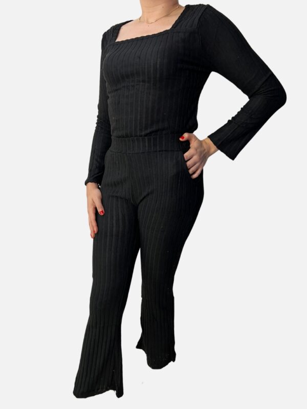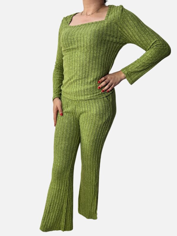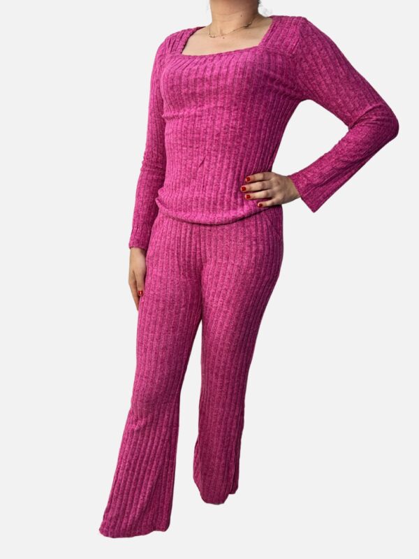 Conjunto de Blusa Manga Larga Más Pantalón Acampanado en Tejido Canela Ultrasuave
